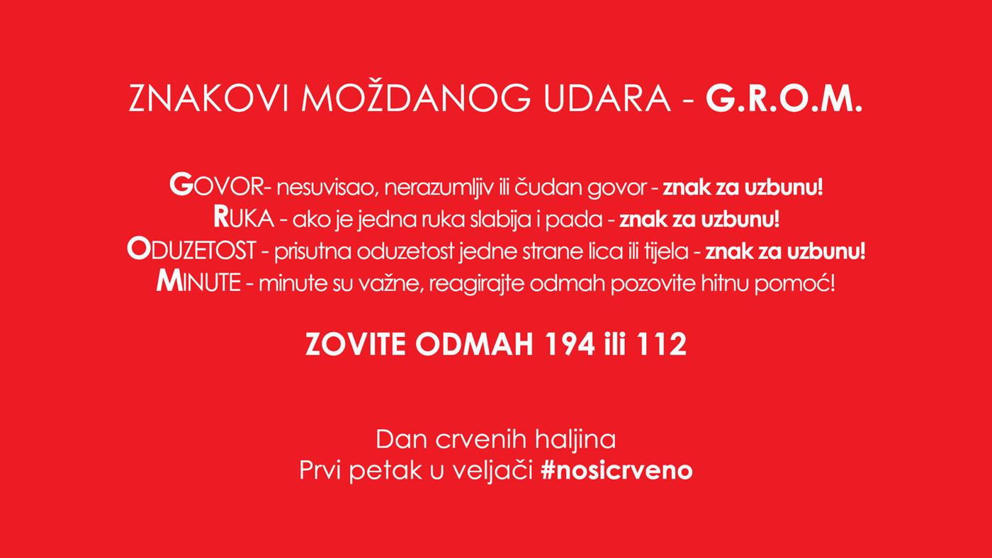 Petu godinu za redom održava se akcija Dan crvenih haljina čiji je cilj podizanje svijesti javnosti o specifičnostima moždanog udara u žena, skretanje pažnje na posljedice zanemarivanja simptoma i na nužnu potrebu promjene načina života.